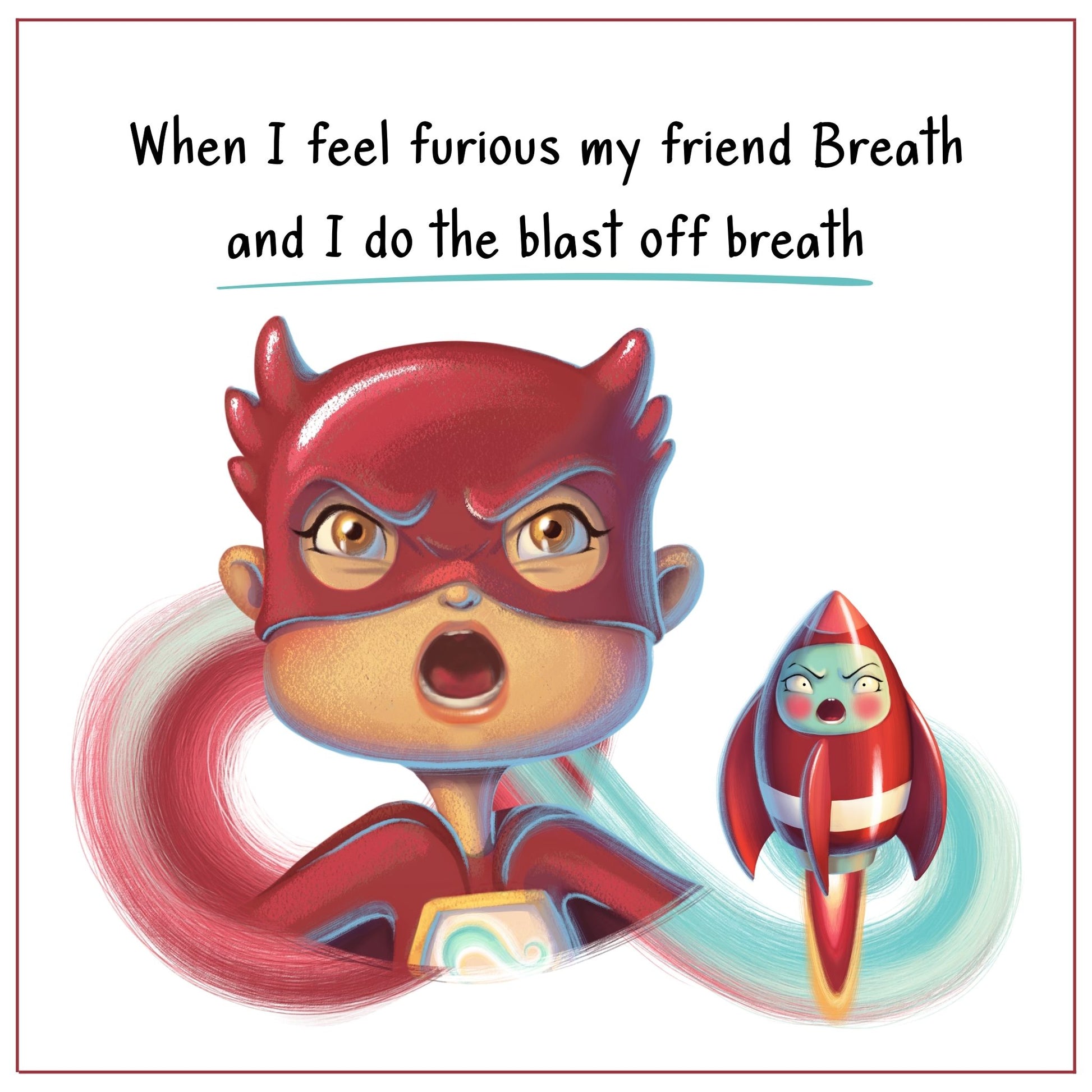The action in this superhero breathing pattern, along with the power of the breath, helps a child to shift their furious energy in a super fun way.