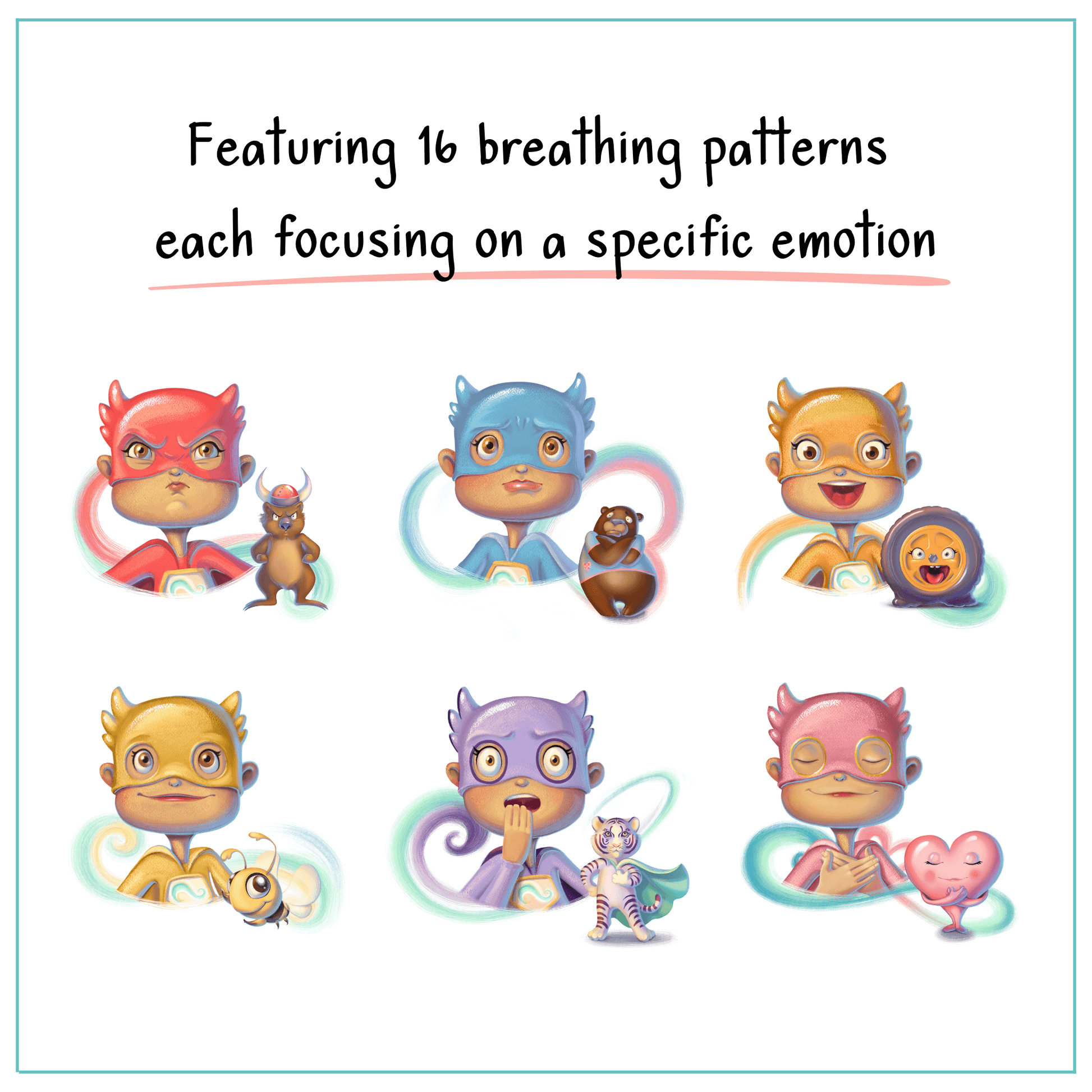 Inside our Superhero Club virtual playground we offer a range of superhero breathing patterns, each designed to support your child when they experience a particular emotion.