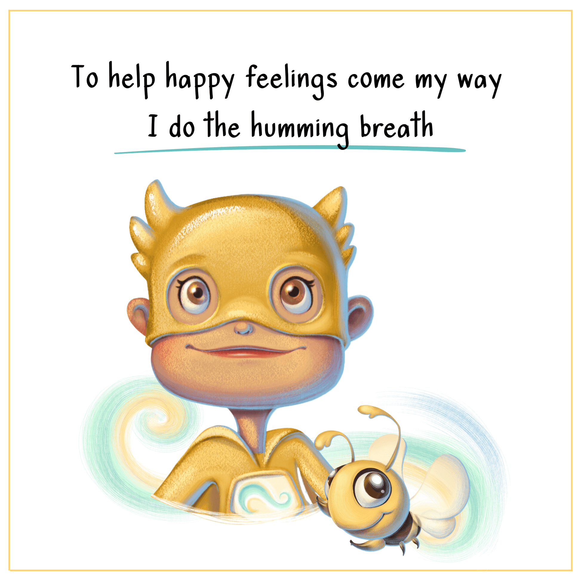 The humming breath can help your child to develop their own happiness practice. So they can boost their mood and cultivate a source of inner joy and contentment, anytime, anywhere.
