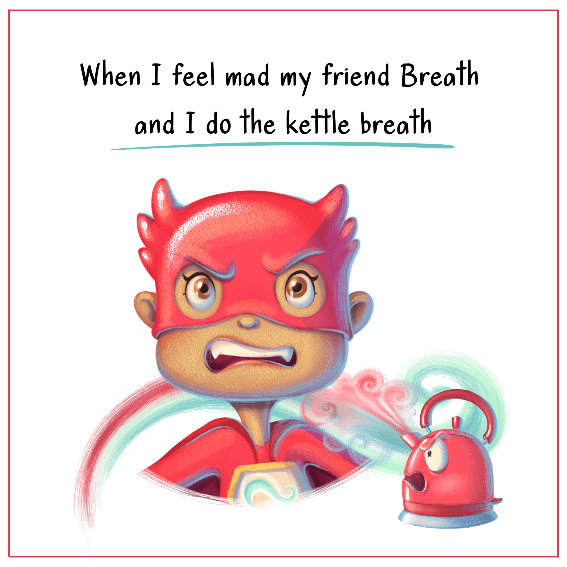 The kettle breath helps your child to create a sense of space and calm in their mind and body, which in turn helps them to reduce their mad feelings.