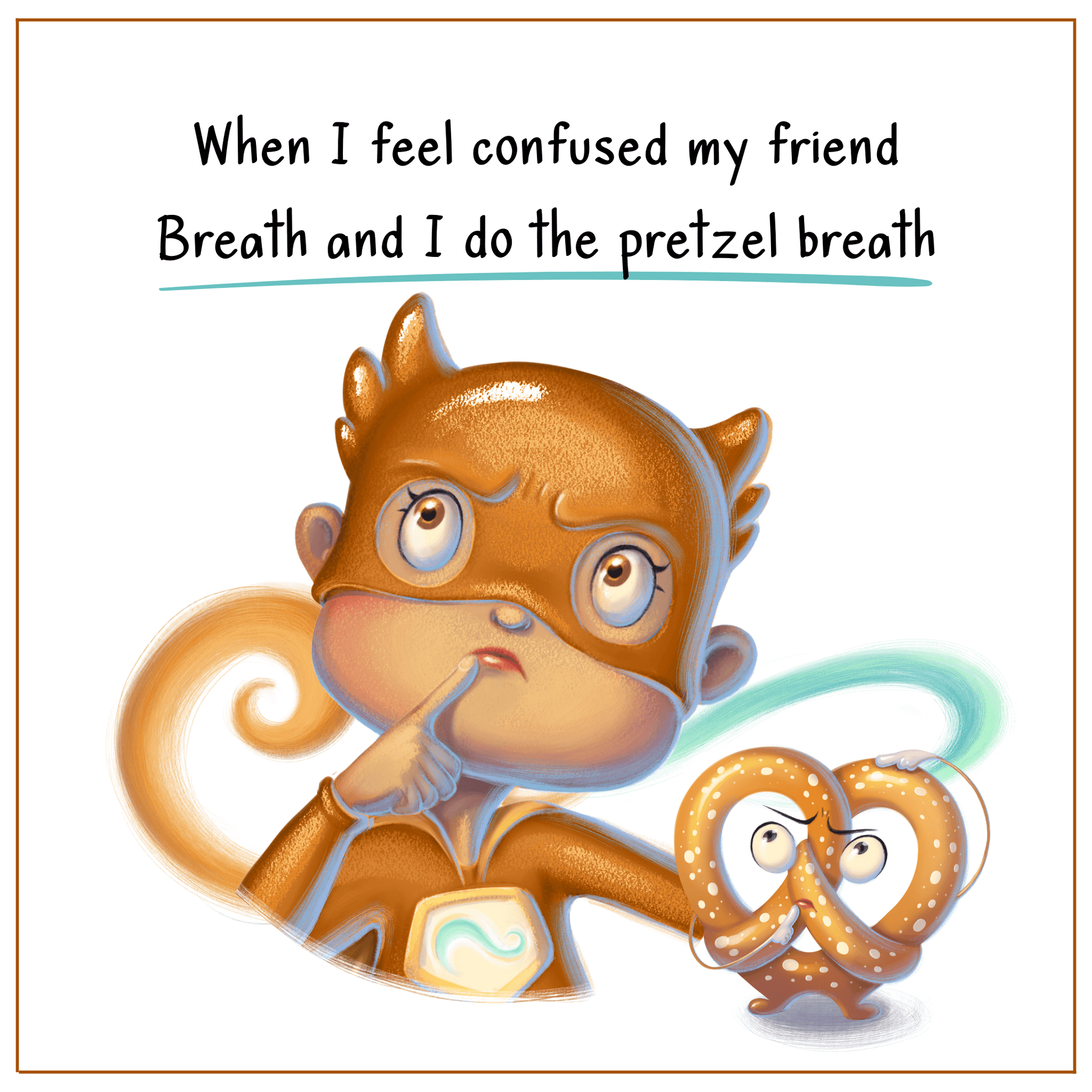 When a child feels confused, the pretzel breath will help to soothe their body and untangle their mind, so they can feel at ease and think more clearly.