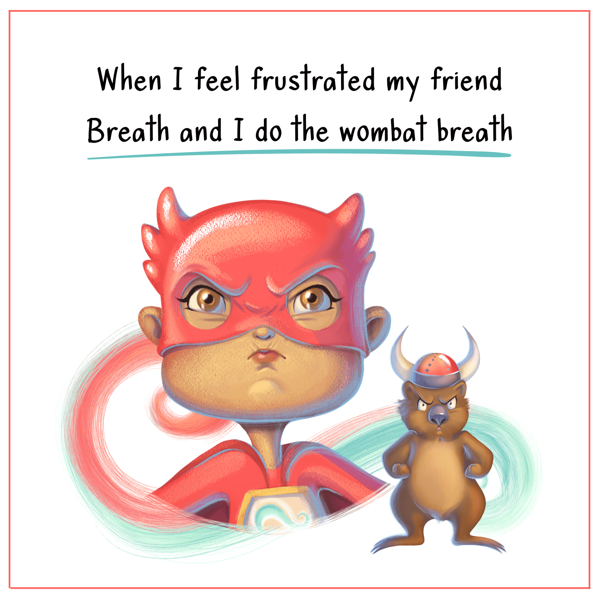 The wombat breath is a fun and effective way to help a child release feelings of frustration from their mind and body.
